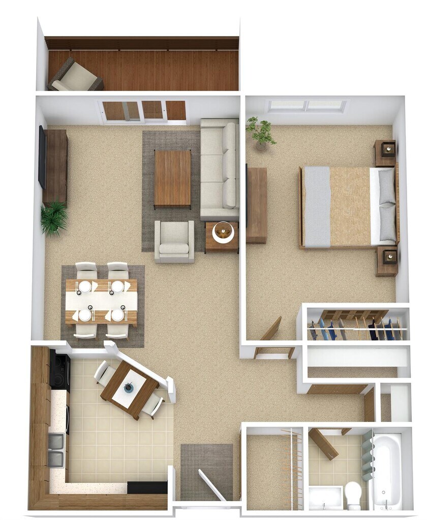 Modelo de apartamento: TyrolDesde $1,3901 Dormitorio, 1 Baño, 795 sq ftDisponible Ahora![]()