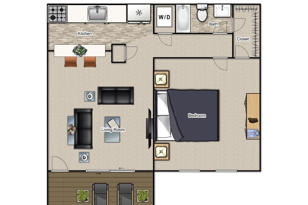 2 Dormitorios, 1 Baño, 950 pies²Disponible AhoraGalería del Modelo