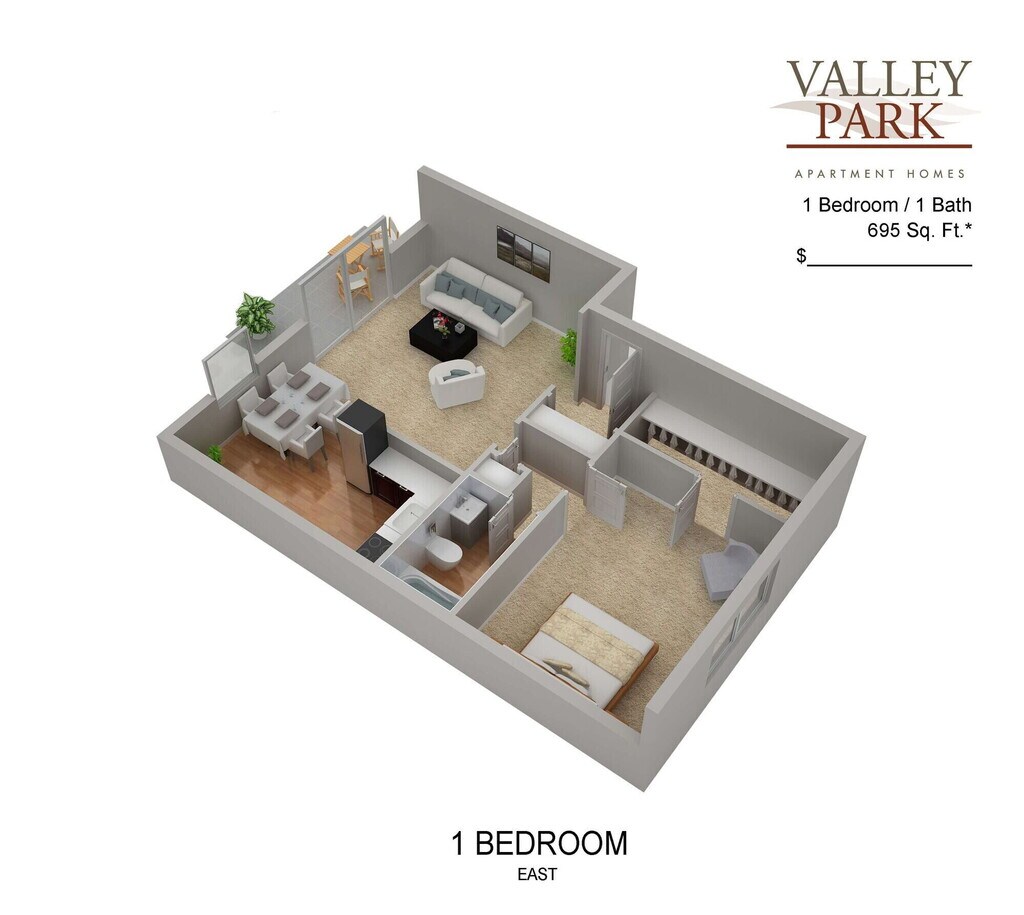 Valley Park ofrece apartamentos de 1 a 2 Dormitorios desde $1,469 con 695–840 pies cuadrados. Aquí está el precio actual y la disponibilidad: