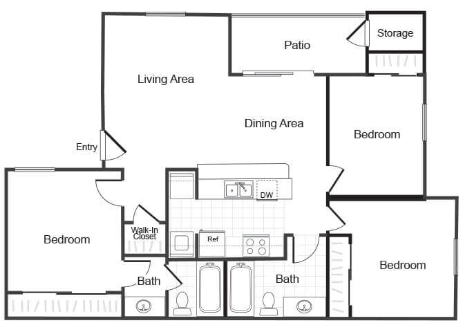 Modelo de apartamento: C13 Dormitorios, 2 Baños, 1100 sq ftNo Disponible![]()