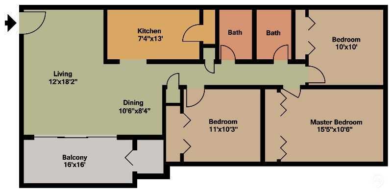Modelo de apartamento: Three Bed Two Bath3 Dormitorios, 2 Baños, 1120 sq ftNo Disponible![]()