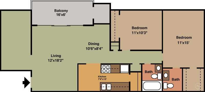 Two Bed Two Bath - Plano 1 ![]()