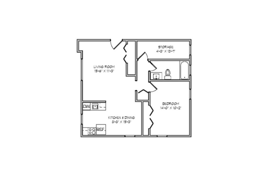 Modelo de apartamento: One Bedrooom$8401 Dormitorio, 1 Baño, 600 sq ftNo Disponible![]()