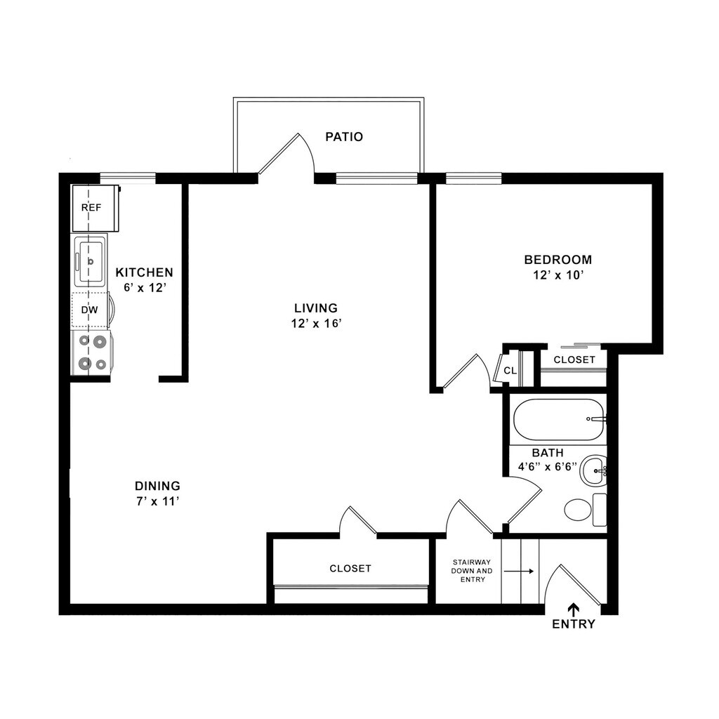 Modelo de apartamento: 1B MainDesde $1,2751 Dormitorio, 1 Baño, 600 sq ftDisponible Ahora![]()