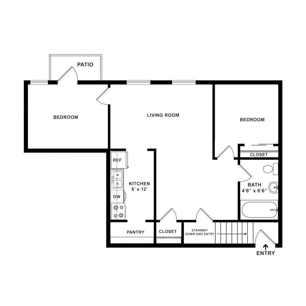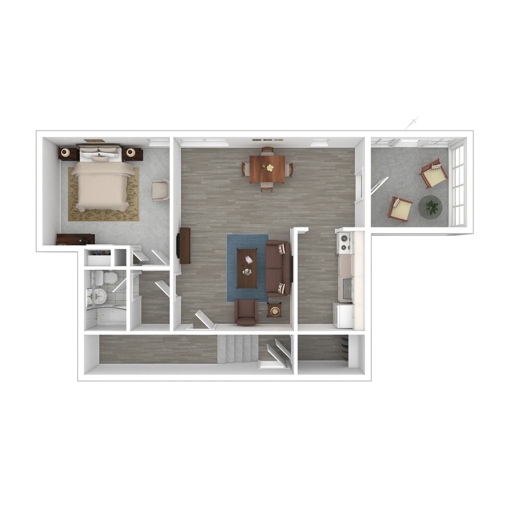 Modelo de apartamento: 1B UpperDesde $1,2941 Dormitorio, 1 Baño, 600 sq ftDisponible Ahora![]()