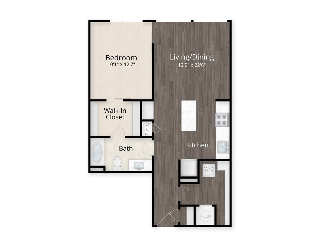 Estudio, 1 Baño, 444-504 pies²Disponible AhoraGalería del Modelo
