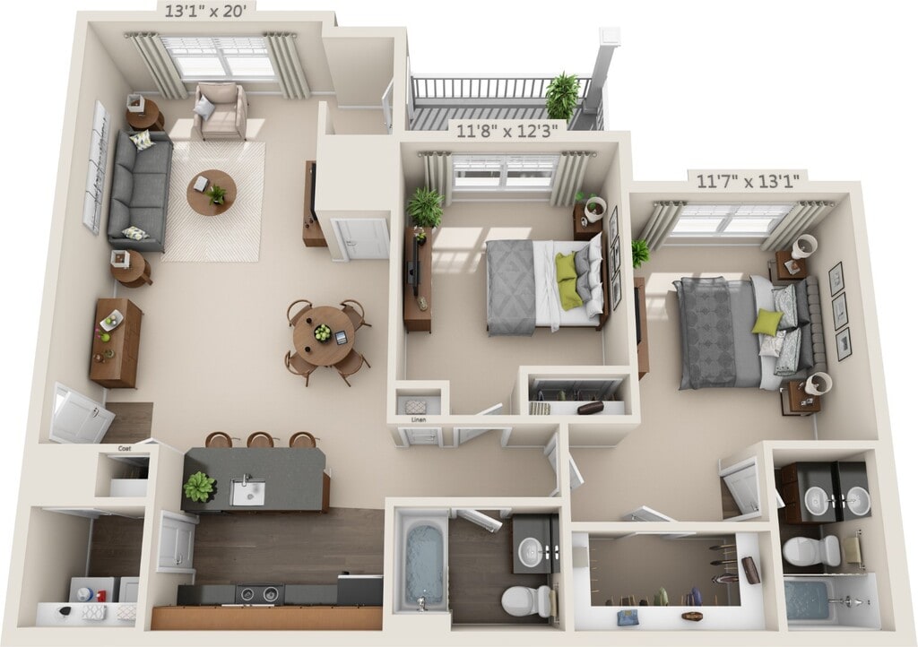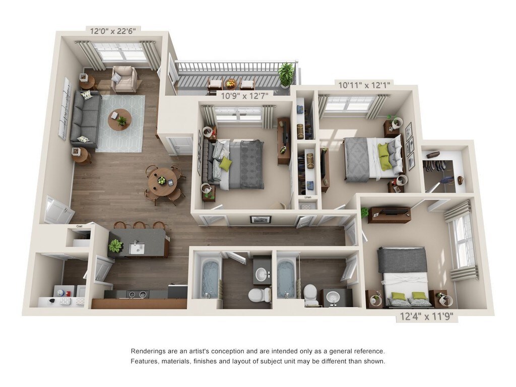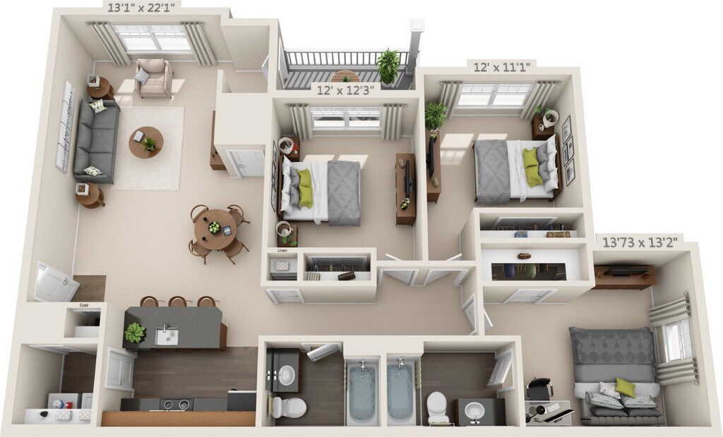 Modelo de apartamento: The Crown$2,0503 Dormitorios, 2 Baños, 1233 sq ftNo Disponible![]()