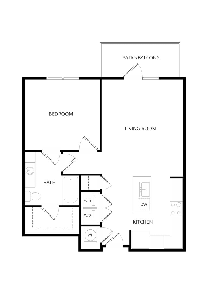 1 Dormitorio, 1 Baño, 670 pies²Disponible AhoraGalería del Modelo