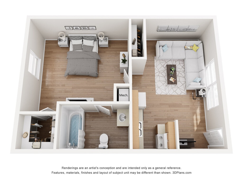 1 Dormitorio, 1 Baño, 595 pies²Galería del Modelo