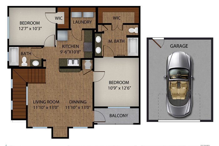 1 Dormitorio, 1 Baño, 522 pies²Galería del Modelo
