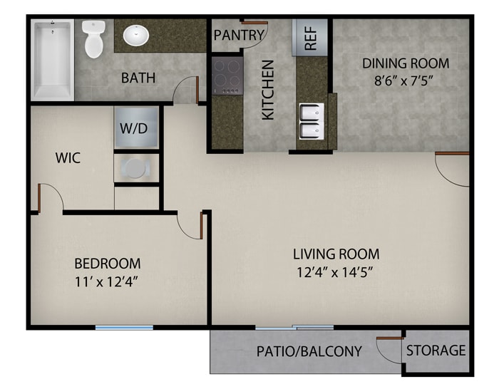 1 Dormitorio, 1 Baño, 795 pies²Disponible Dec 6Galería del Modelo