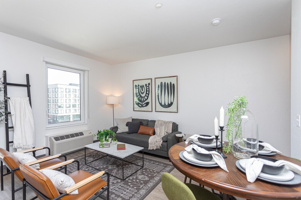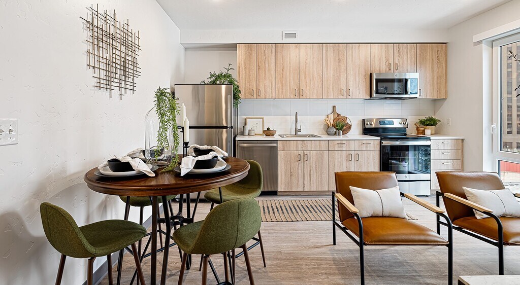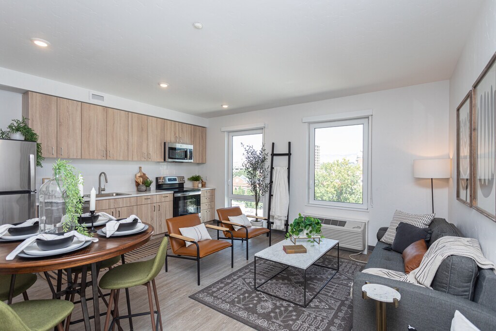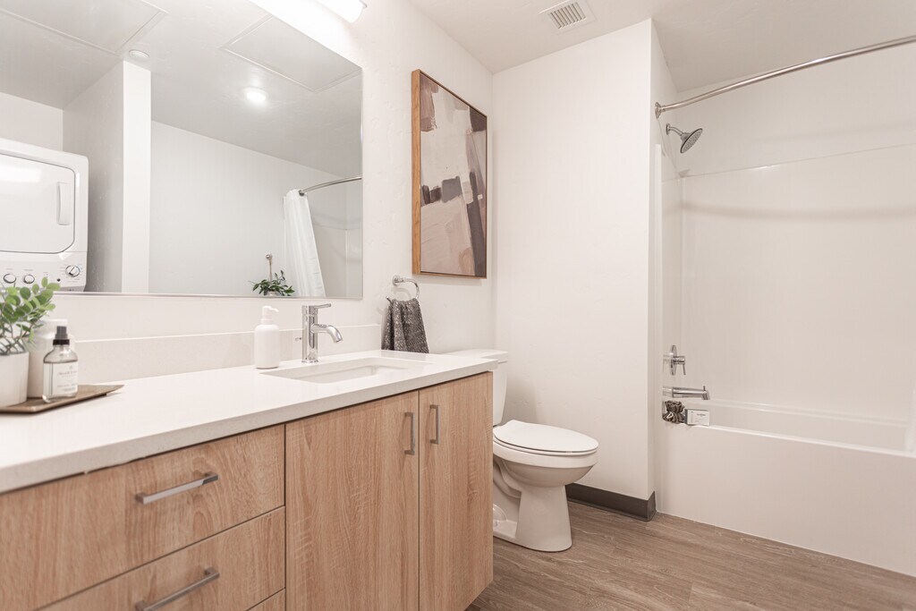 Vanguard ofrece una hermosa selección de apartamentos tipo estudio, de una y dos habitaciones. Cada apartamento cuenta con una cocina completa diseñada con electrodomésticos y acabados modernos, amplios baños y una lavadora y secadora. Los apartamentos seleccionados tienen balcones, y los apartamentos con orientación al norte tienen impresionantes vistas de las montañas. Todos los apartamentos tienen grandes ventanales con mucha luz natural. Tu mascota es más que bienvenida. También las amamos.