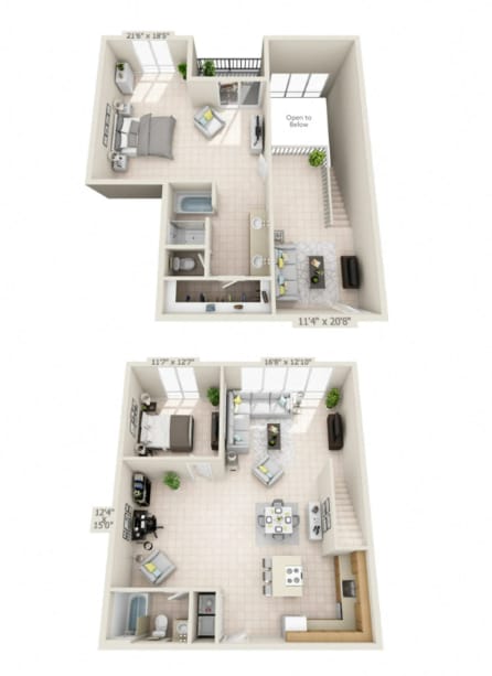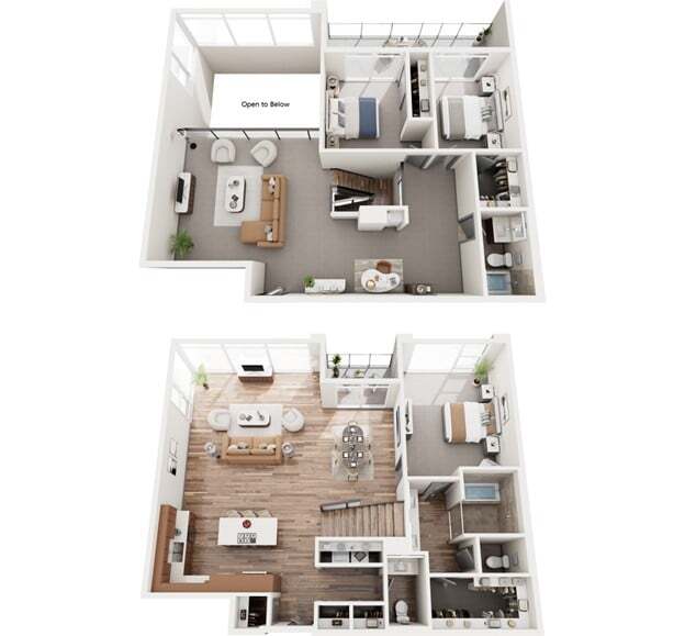 Modelo de apartamento: B2 F LOFTDesde $2,9502 Dormitorios, 2 Baños, 2127 sq ftDisponible Ahora![]()