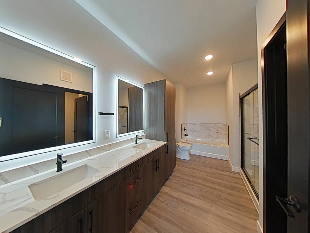 - Baños inspirados en el spa con espejo retroiluminado LED