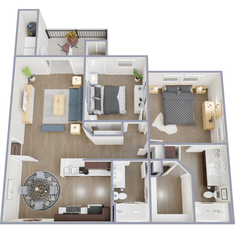Modelo de apartamento: B2Desde $1,5002 Dormitorios, 2 Baños, 978 sq ftDisponible Ahora![]()