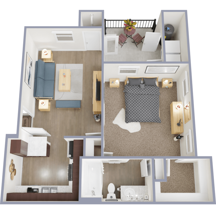 1 Dormitorio, 1 Baño, 747 pies²Disponible AhoraGalería del Modelo