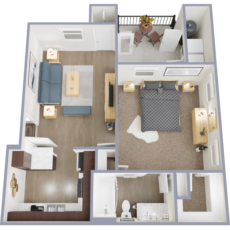 1 Dormitorio, 1 Baño, 755 pies²Disponible AhoraEl más grandeEsta opción tiene las unidades más grandes para este modeloGalería del Modelo