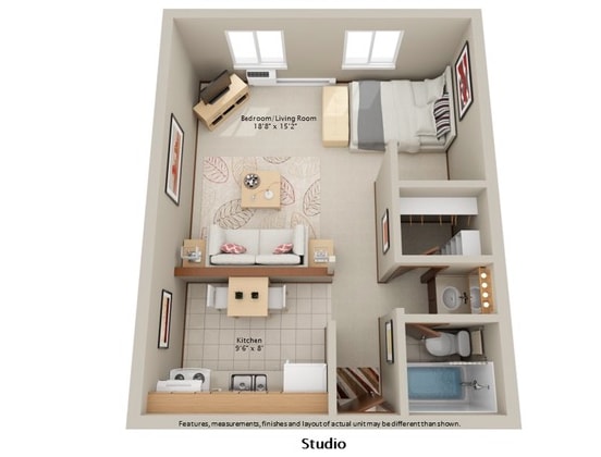 Modelo de apartamento: StudioDesde $896Estudio, 1 Baño, 430 sq ftDisponible July 31, 2026![]()