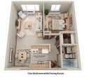 Modelo de apartamento: 1 Bedroom with Dining RoomDesde $9381 Dormitorio, 1 Baño, 550 sq ftDisponible July 6, 2026![]()