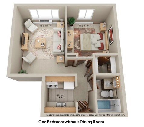 Modelo de apartamento: 1 Bedroom without Dining Room$8961 Dormitorio, 1 Baño, 500 sq ftDisponible August 3, 2026![]()