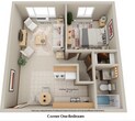 Modelo de apartamento: Small Corner 1 Bedroom$9591 Dormitorio, 1 Baño, 530 sq ftDisponible Ahora![]()