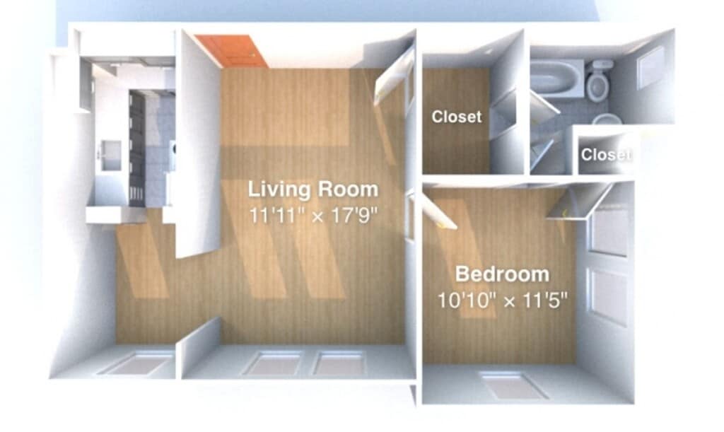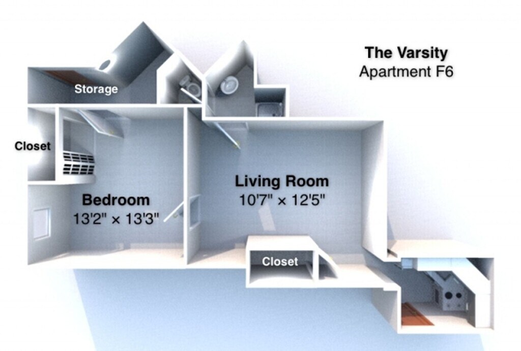 Modelo de apartamento: The Varsity - Unit 10'sEstudio, 1 Baño, 311 sq ftDisponible July 13, 2026![]()