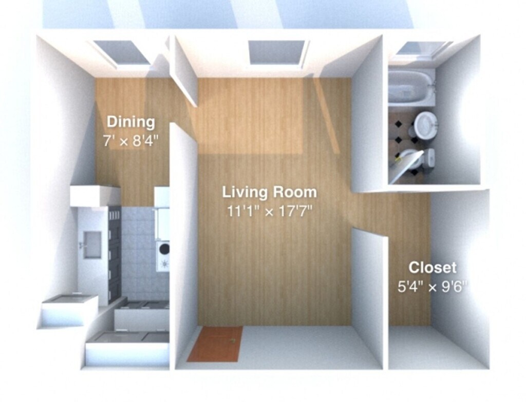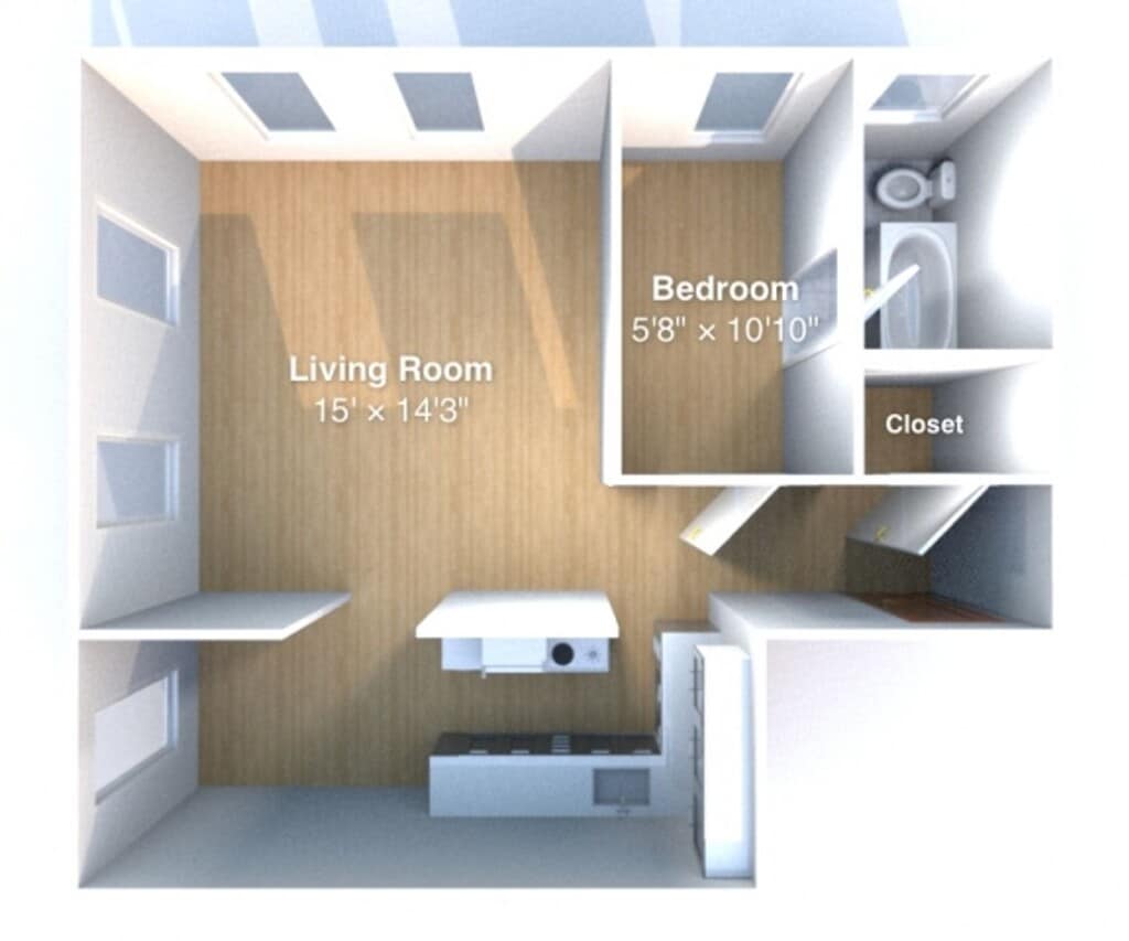 Estudio, 1 Baño, 306 pies²Disponible AhoraGalería del Modelo