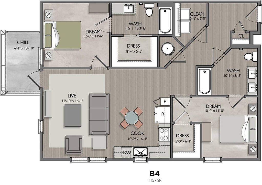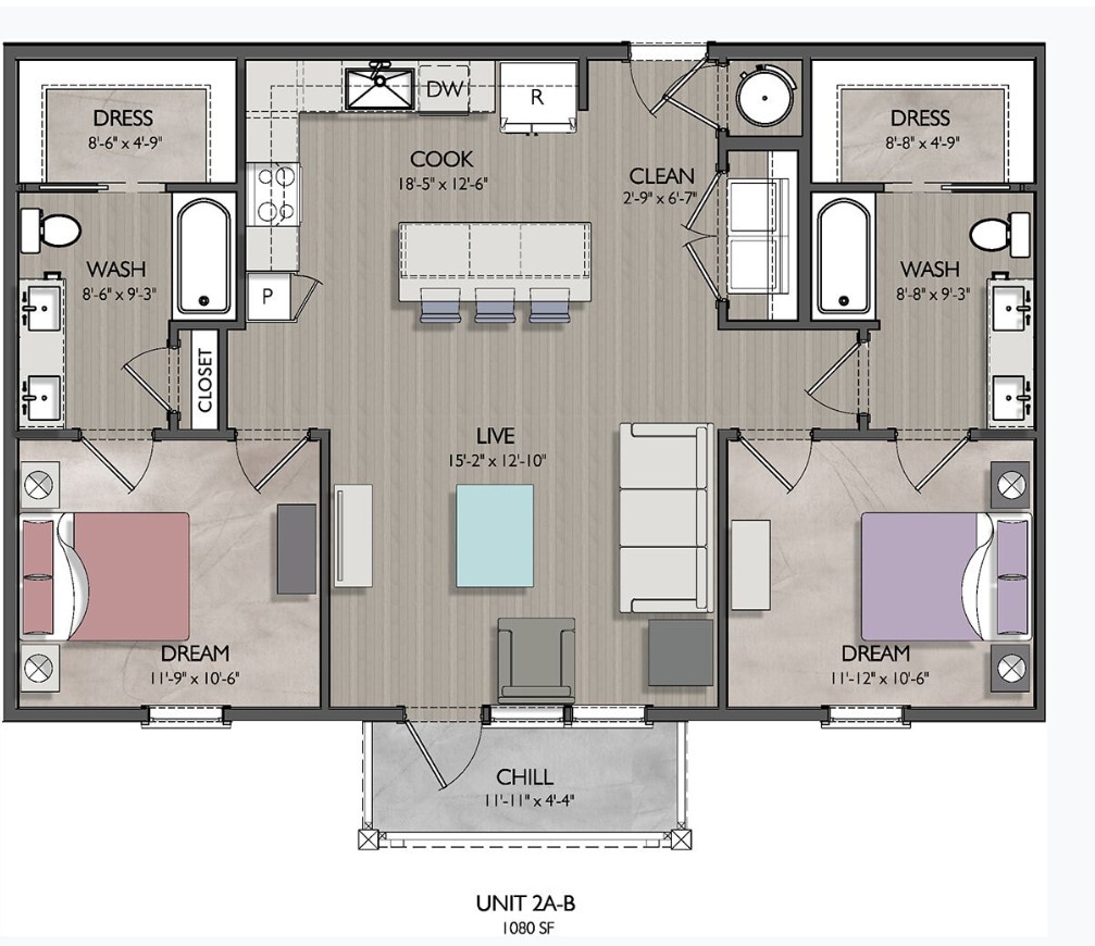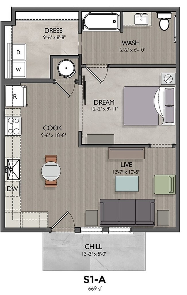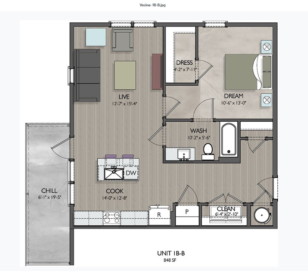 1 Dormitorio, 1 Baño, 819 pies²Disponible AhoraGalería del Modelo