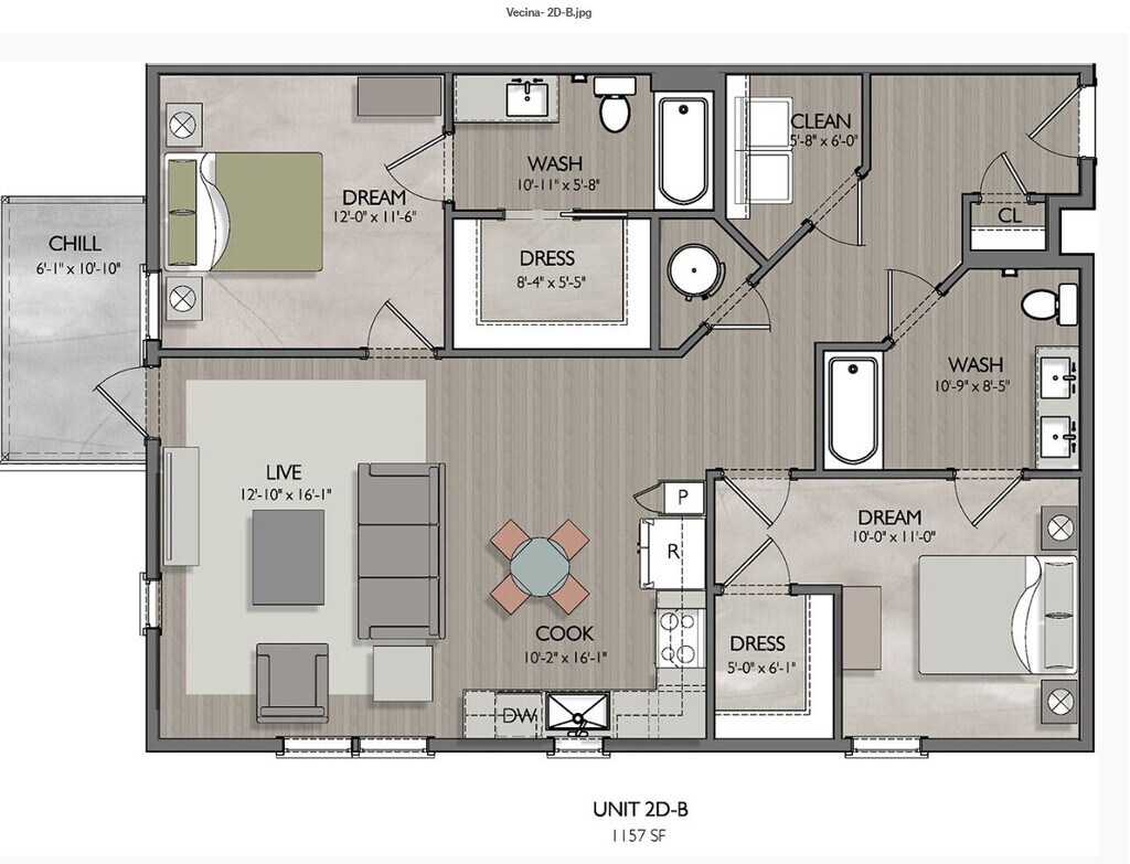 Vecina Apartment Villas ofrece apartamentos de 1 a 3 Dormitorios desde $1,156 con 602–1,696 pies cuadrados. Aquí está el precio actual y la disponibilidad: