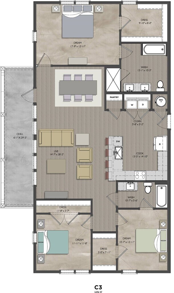 A5 - Plano 1 Los planos de la planta son una interpretación artística. Todas las dimensiones son aproximadas. Los tamaños o el detalle del producto real y sus especificaciones pueden variar. No todas las características están disponibles en todos los hogares para rentar. Los precios y la disponibilidad están sujetos a cambios. El alquiler que se muestra es mensual. Se pueden aplicar ciertos cargos, por ejemplo, entrega de paquetes, recolección de basura, agua, servicios, etc. Depositos varian. Consulta a un representante para conocer detalles.