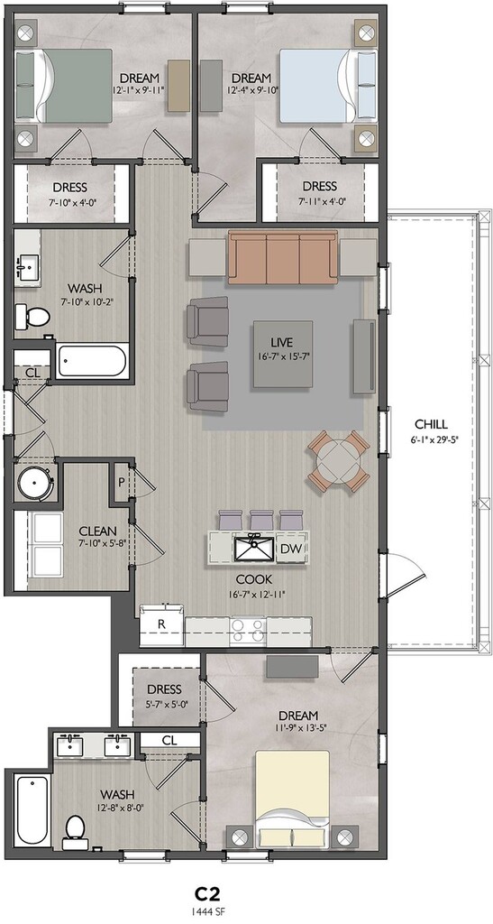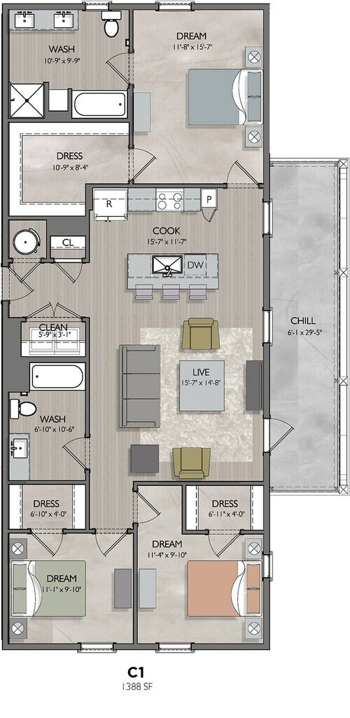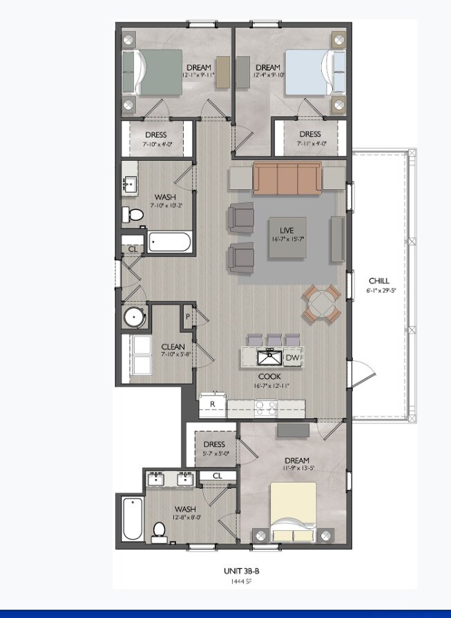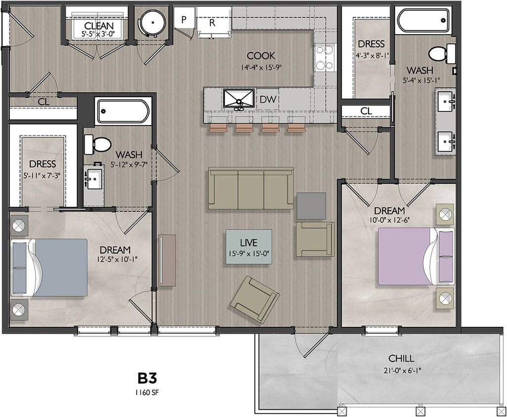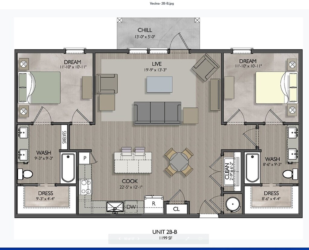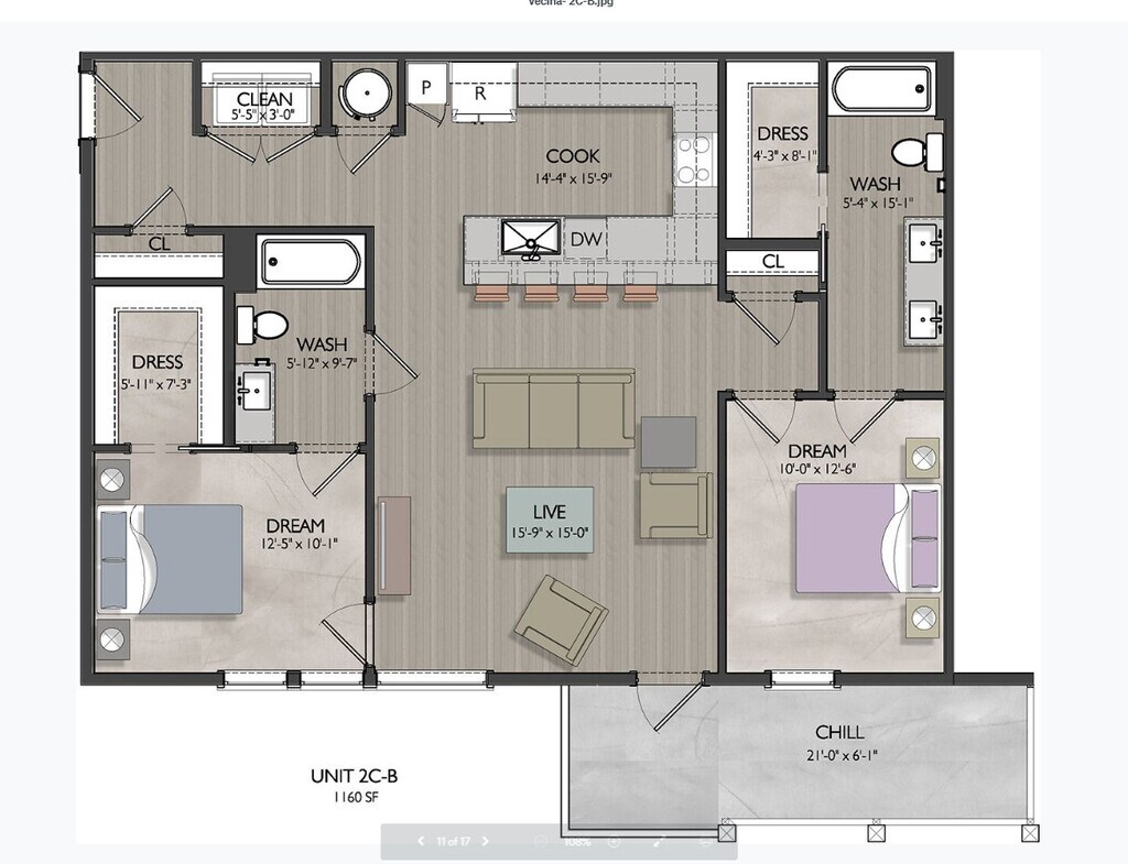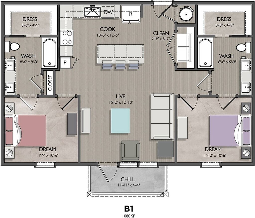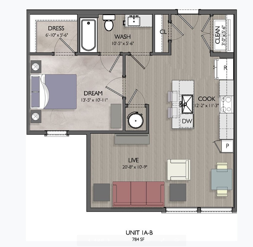 1 Dormitorio, 1 Baño, 795 pies²Disponible AhoraGalería del Modelo