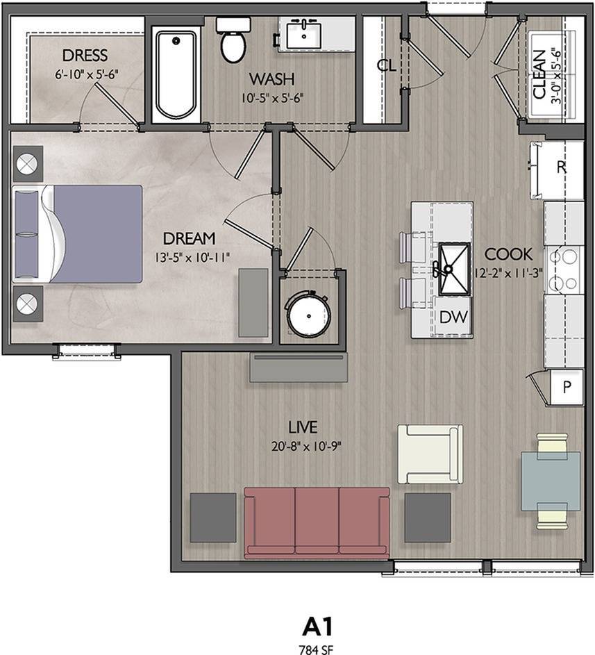 Modelo de apartamento: A1Desde $1,1561 Dormitorio, 1 Baño, 784 sq ftDisponible AhoraLos planos de la planta son una interpretación artística. Todas las dimensiones son aproximadas. Los tamaños o el detalle del producto real y sus especificaciones pueden variar. No todas las características están disponibles en todos los hogares para rentar. Los precios y la disponibilidad están sujetos a cambios. El alquiler que se muestra es mensual. Se pueden aplicar ciertos cargos, por ejemplo, entrega de paquetes, recolección de basura, agua, servicios, etc. Depositos varian. Consulta a un representante para conocer detalles.