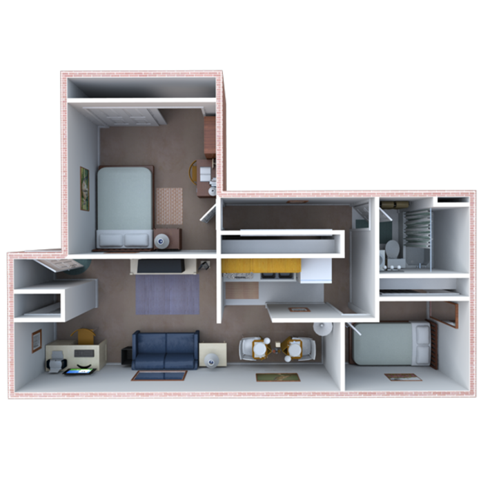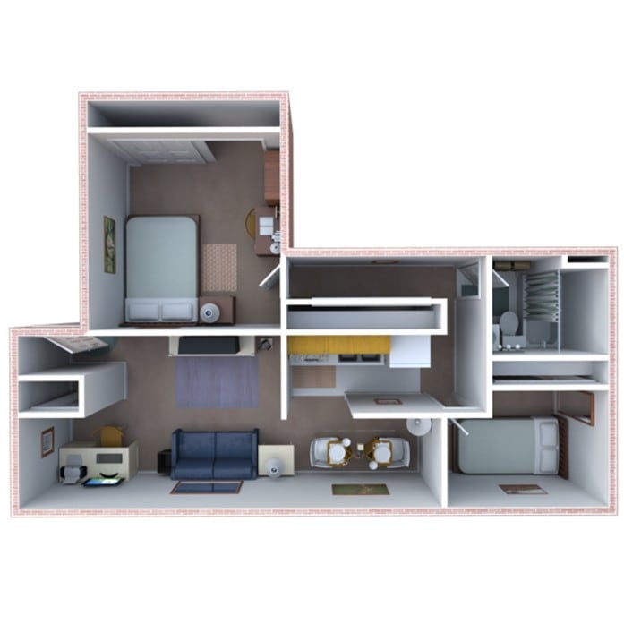 2 Dormitorios, 1 Baño, 690 pies²Galería del Modelo