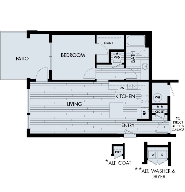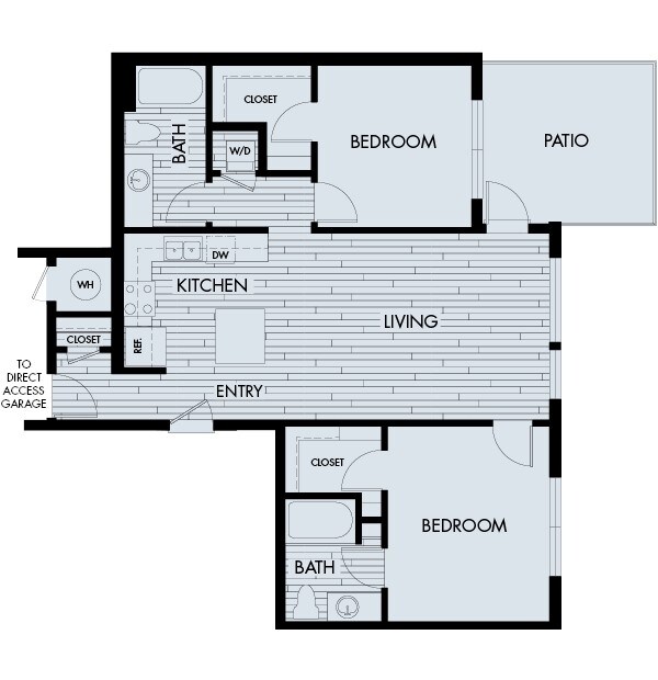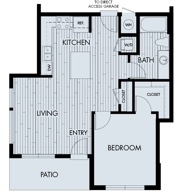 Modelo de apartamento: Vela Plan 1B (Direct Access Garage)Llame para Precios1 Dormitorio, 1 Baño, 746 sq ftNo DisponibleVela Plan 1B (Direct Access Garage) - Plano 1 Vela Plan 1C