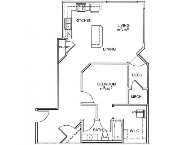 1 Dormitorio, 1 Baño, 618 pies²Disponible AhoraGalería del Modelo