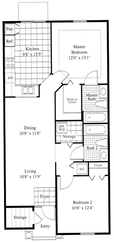 2 Dormitorios, 2 Baños, 1050 pies²Disponible AhoraEl más grandeEsta opción tiene las unidades más grandes para este modeloGalería del Modelo