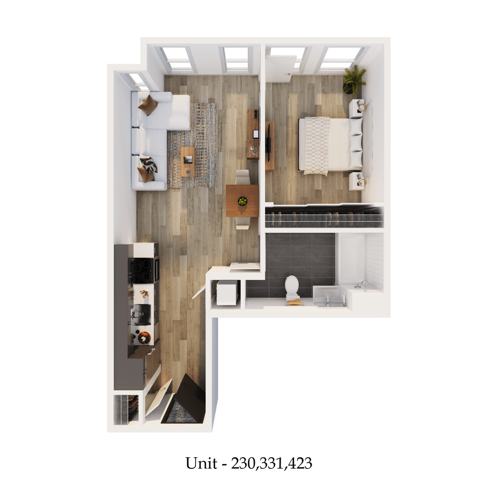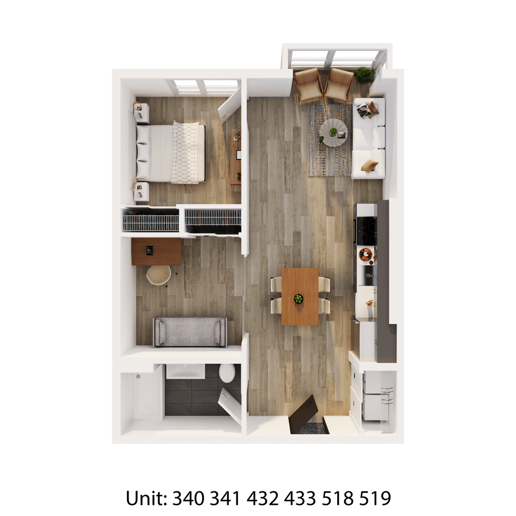 Estudio, 1 Baño, 365-514 pies²Disponible AhoraGalería del Modelo
