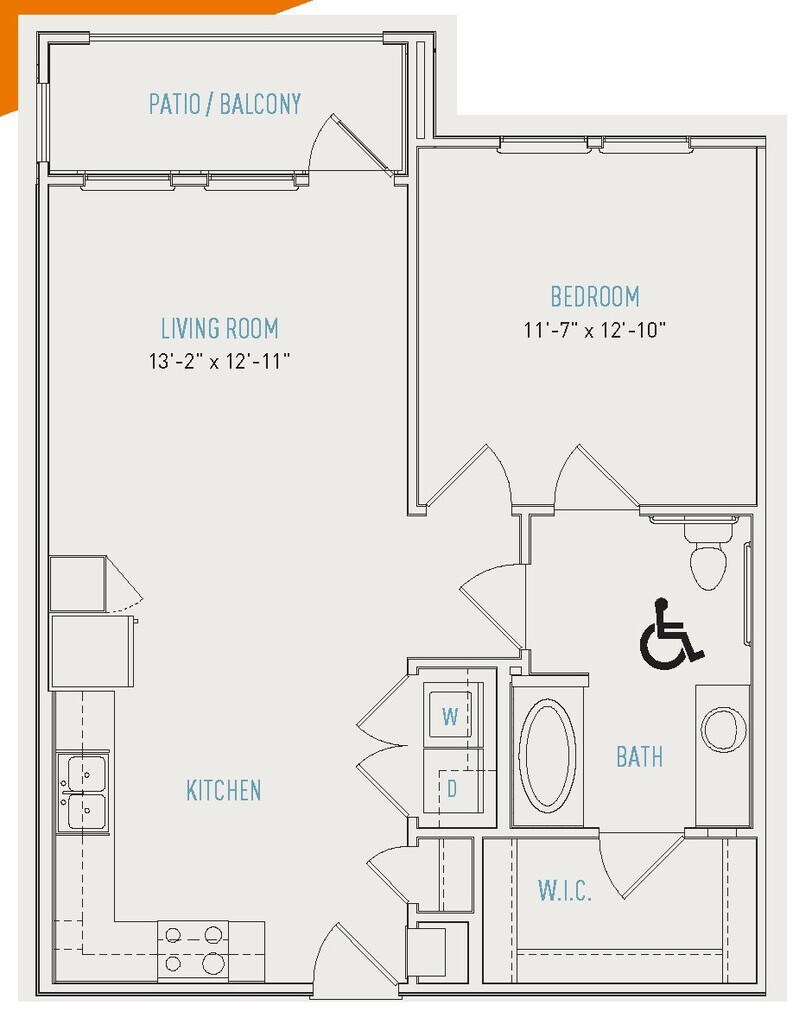1 Dormitorio, 1 Baño, 742 pies²Disponible AhoraGalería del Modelo
