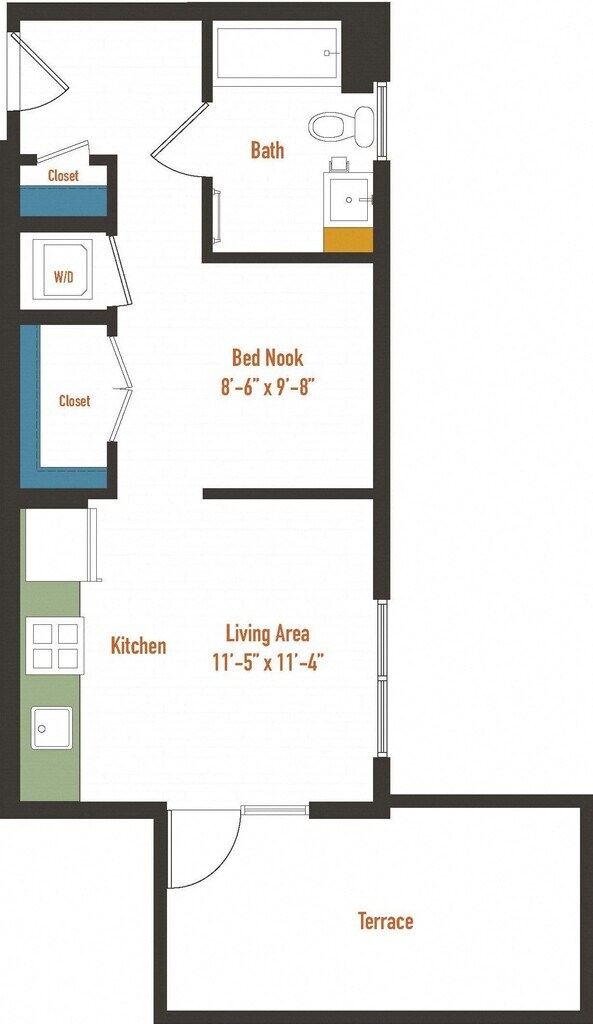 Estudio, 1 Baño, 421 pies²Disponible AhoraGalería del Modelo