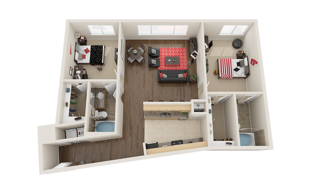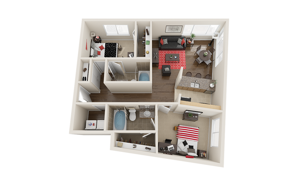 Modelo de apartamento: B4A$1,2252 Dormitorios, 2 Baños, 1050 sq ftDisponible August 19, 2026![]()