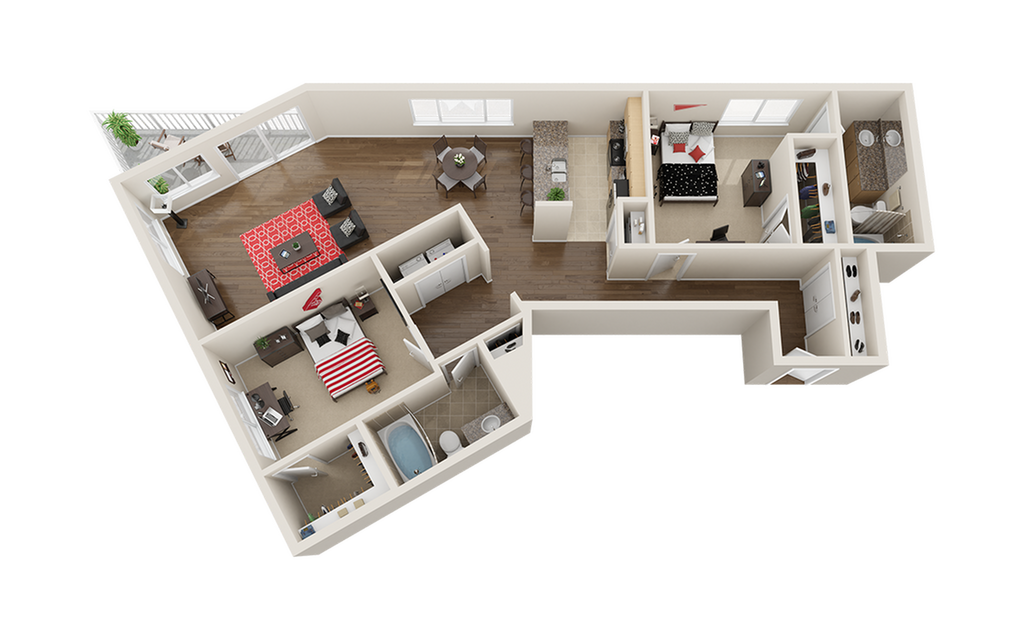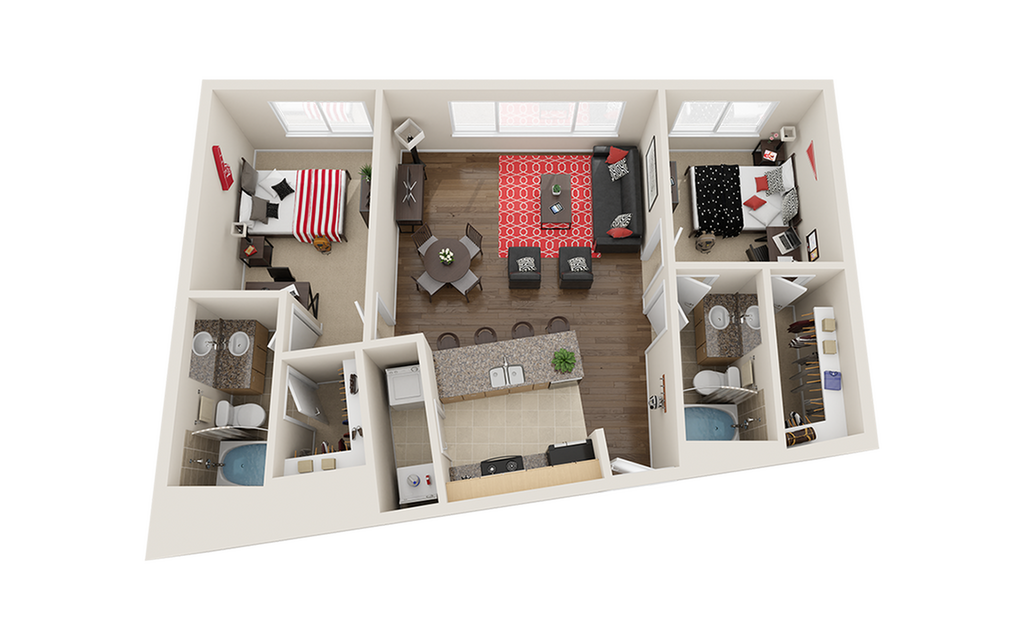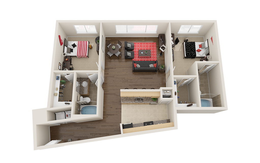 Modelo de apartamento: B2$1,2252 Dormitorios, 2 Baños, 1050 sq ftDisponible August 19, 2026![]()