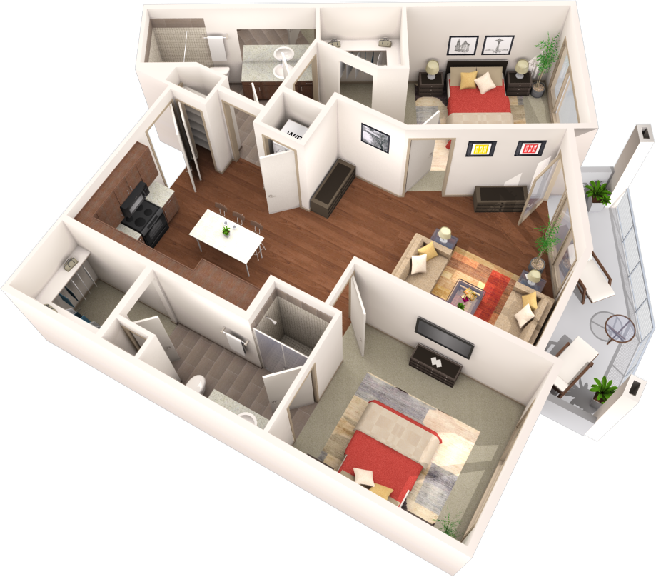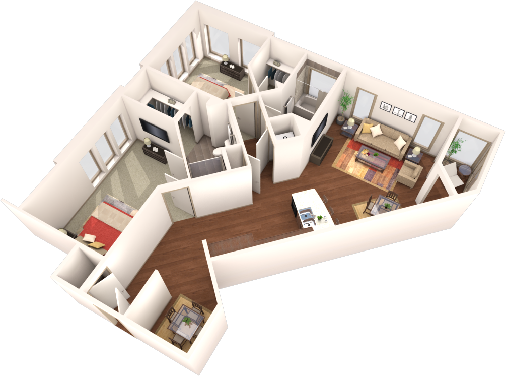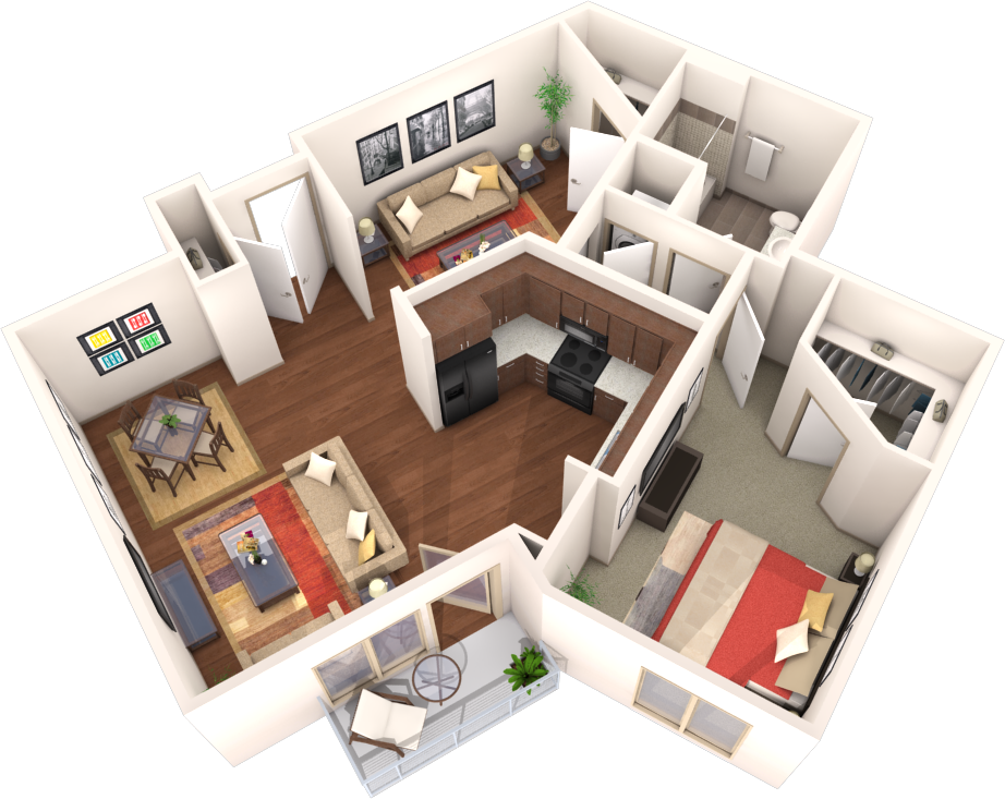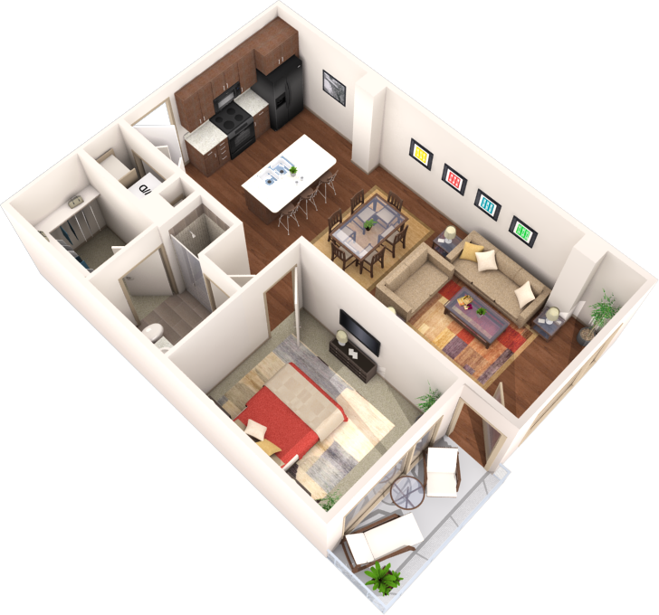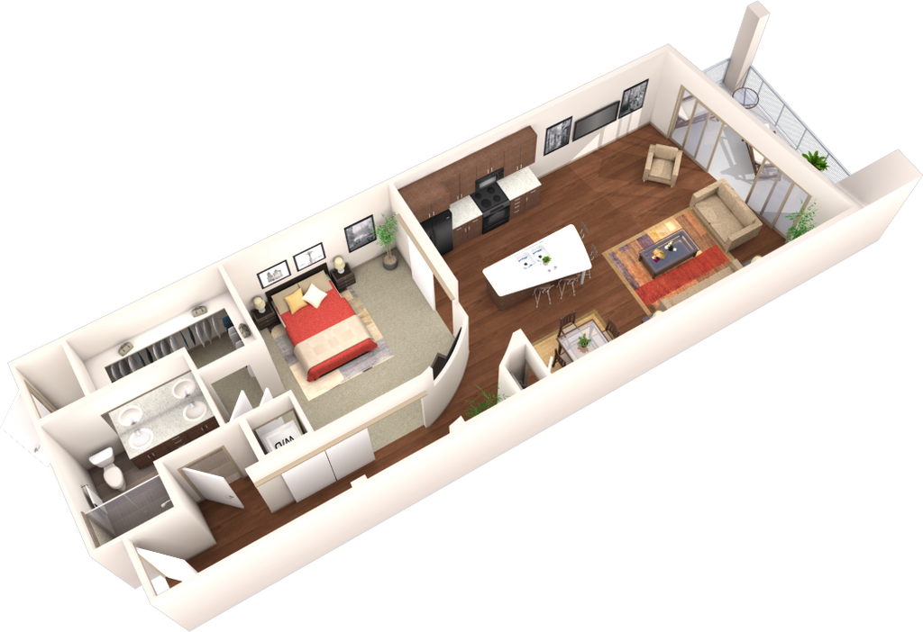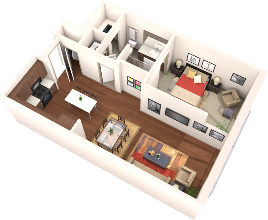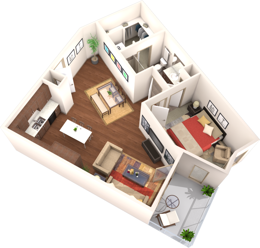 1 Dormitorio, 1 Baño, 739 pies²Disponible AhoraGalería del Modelo