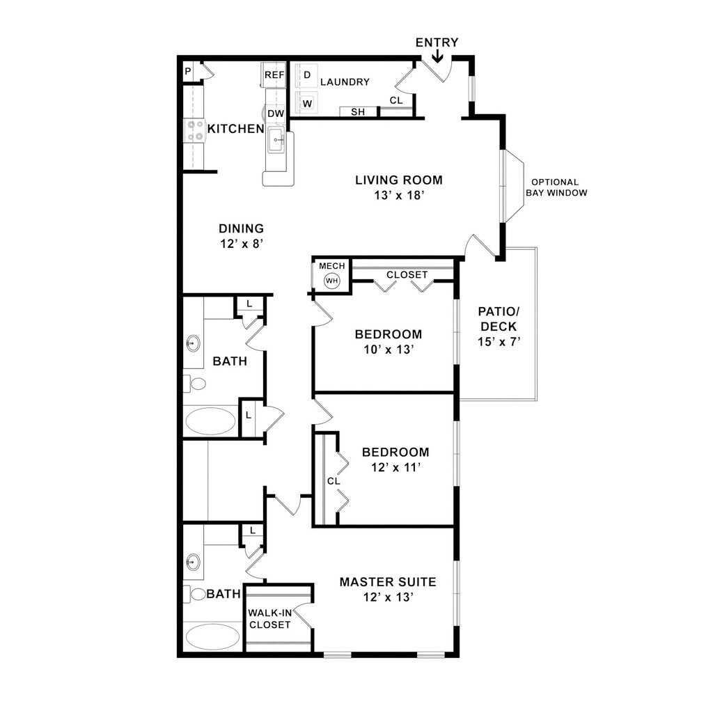 Modelo de apartamento: The PoplarDesde $1,7853 Dormitorios, 2 Baños, 1546 sq ftDisponible Ahora![]()