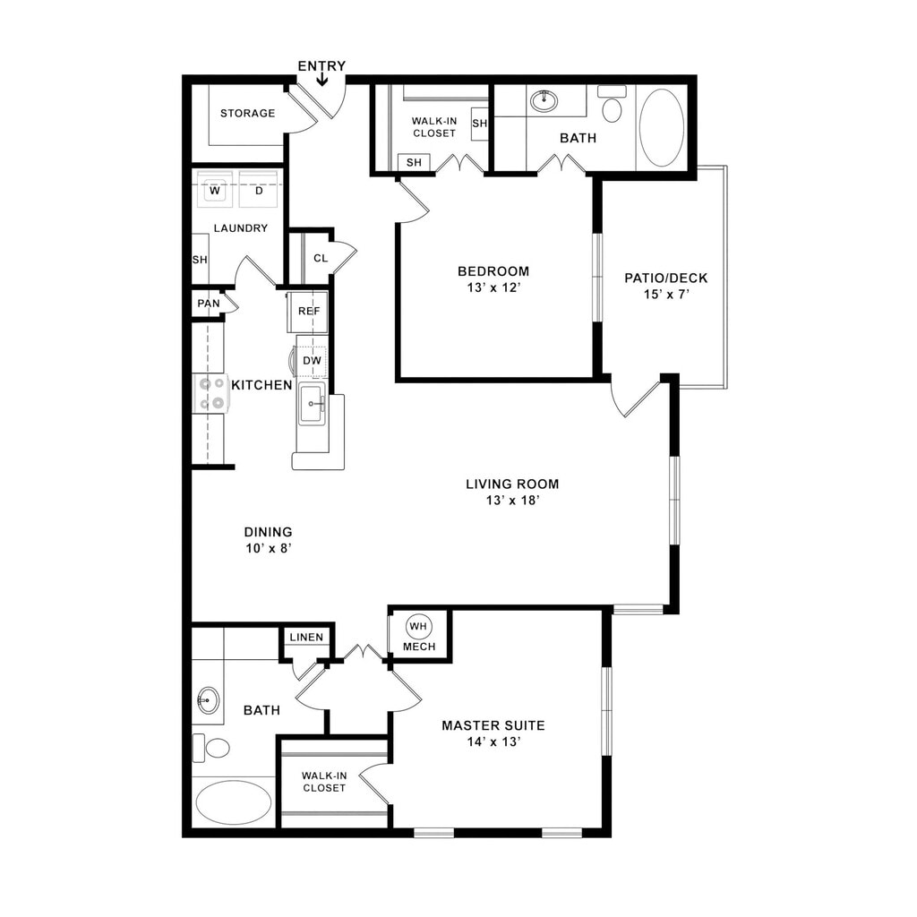 Modelo de apartamento: The OakLlame para Precios1 Dormitorio, 1 Baño, 959 sq ftNo Disponible![]()