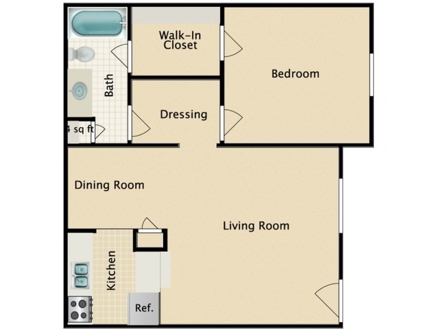 1 Dormitorio, 1 Baño, 640-700 pies²Galería del Modelo