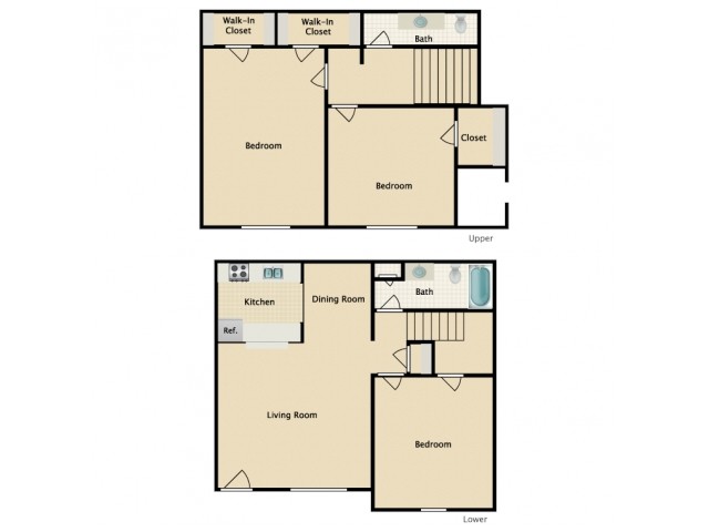 Modelo de apartamento: 4 Bed 2 Bath Townhome4 Dormitorios, 2 Baños, 1610 sq ftNo Disponible![]()