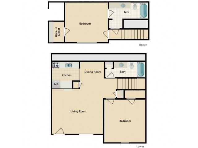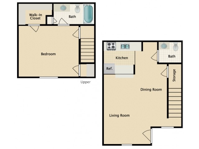 2 Bed 1 Bath - Plano 8 2 Bed 2 Bath Townhome