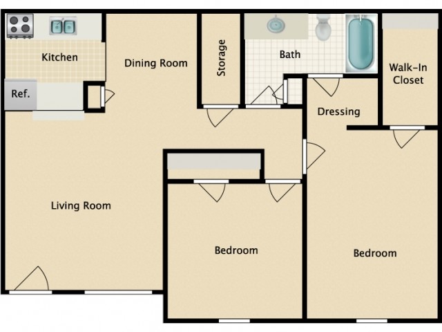 2 Dormitorios, 1 Baño, 900-1100 pies²Galería del Modelo