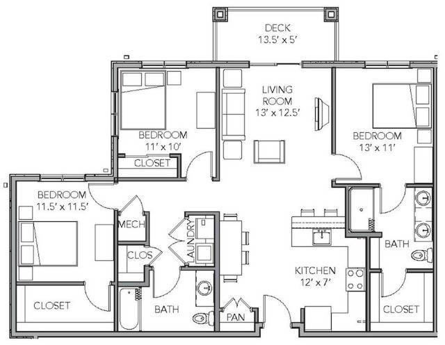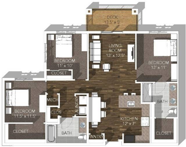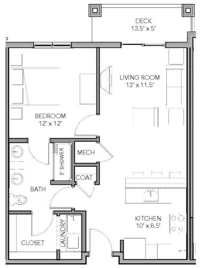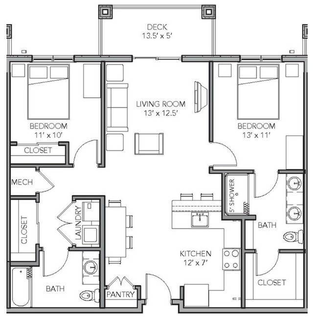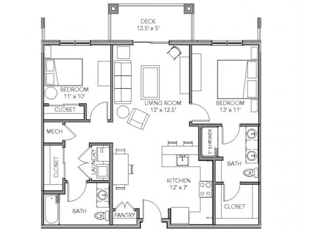1 Bedroom ADA - Plano 2 1 Bedroom Furnished