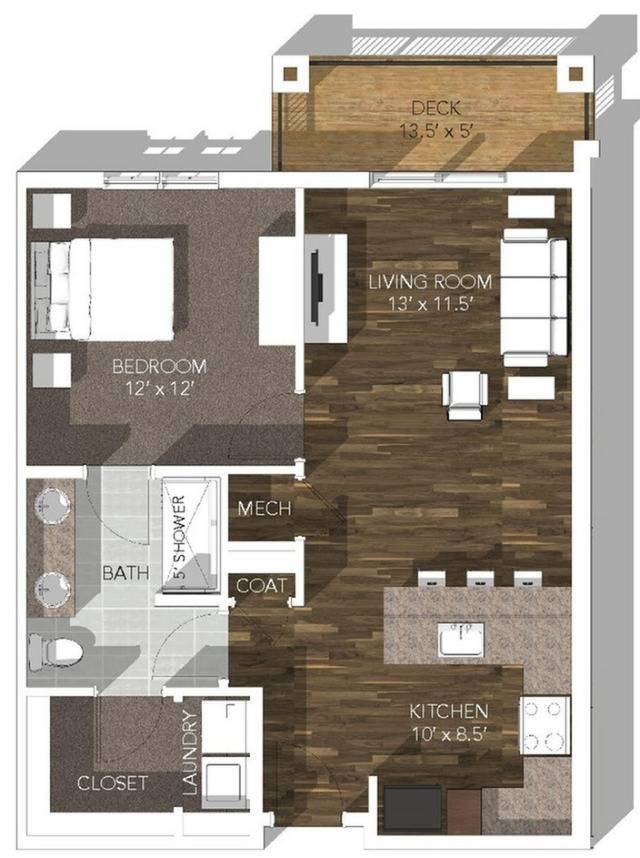 1 Dormitorio, 1 Baño, 702 pies²Disponible AhoraGalería del Modelo